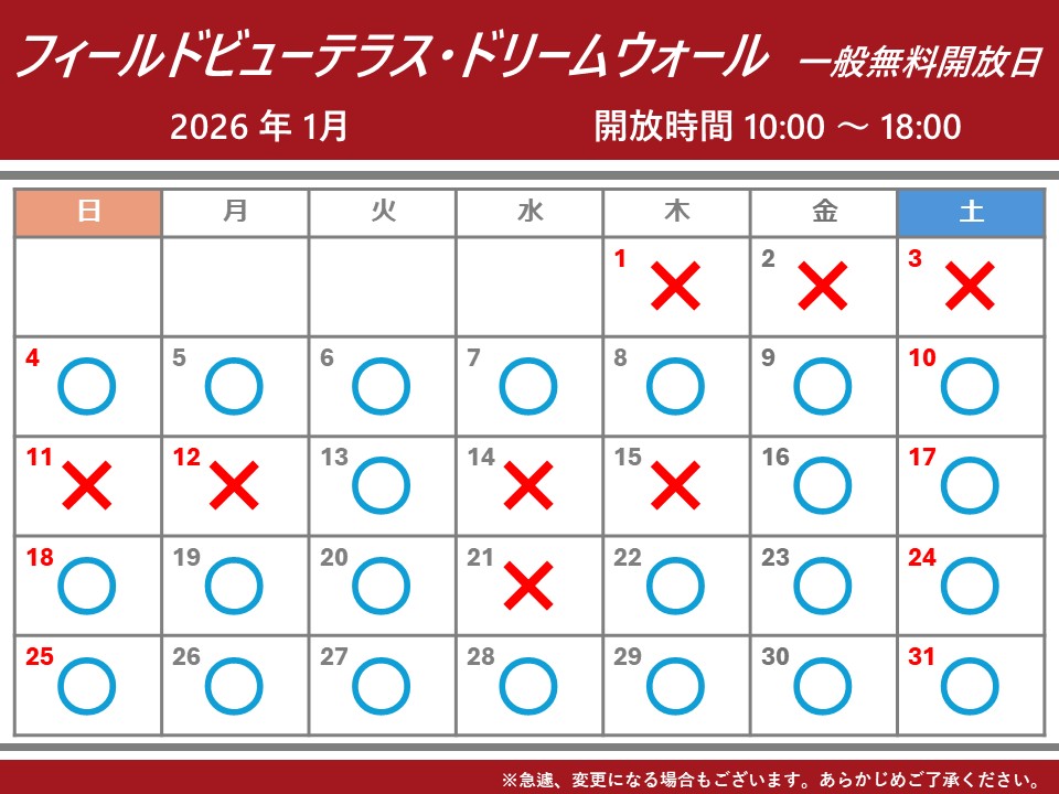 11月5日(水)フィールドビューテラス・ドリームウォール開放のお知らせ