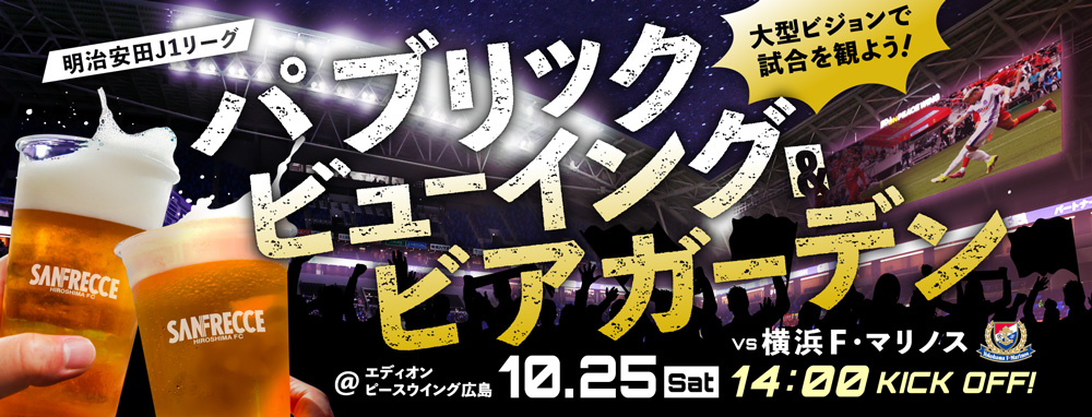 このたび、広島サッカースタジアム(エディオンピースウイング広島)指定管理者である株式会社サンフレッチェ広島は、10月25日(土)に行われる明治安田J1リーグのアウェイ・横浜F・マリノス戦において、エディオンピースウイング広島にてパブリックビューイングを開催することを決定しましたのでご案内いたします。