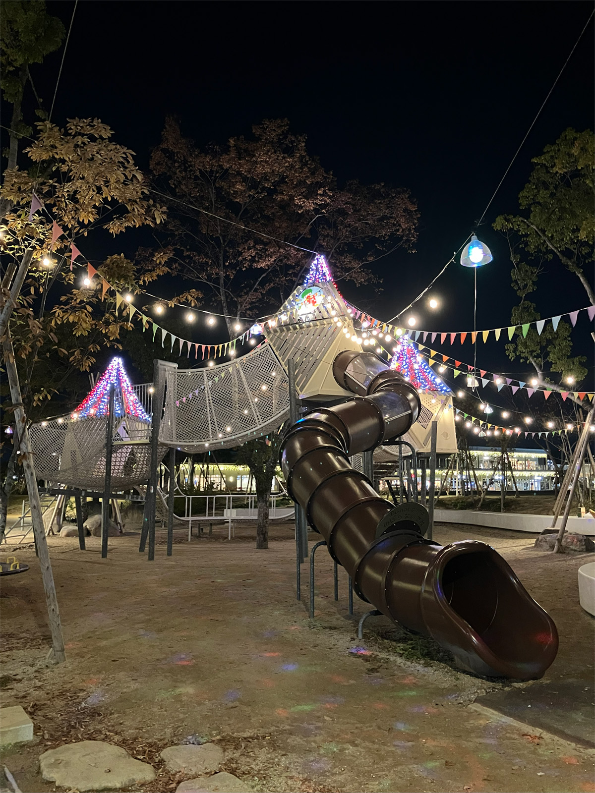 今年もひろしまスタジアムパークではイルミネーションを開催中✨ HiroPa 各店舗や水辺エリアに加え、今年は“サーカス”をテーマに遊具エリアが華やかに彩られます🎪✨